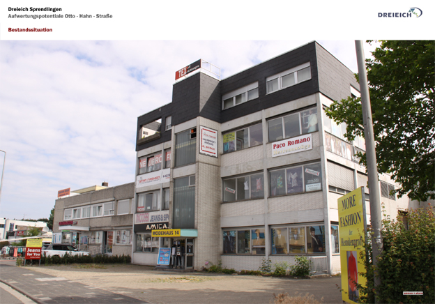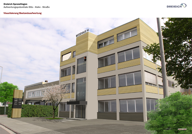Die Stadt Dreieich arbeitet intensiv an einer Aufwertung des Gewerbegebietes Otto-Hahn-Straße in Dreieich Sprendlingen. Um Handlungsmöglichkeiten für die Gebäudeeigentümer im Gebiet aufzuzeigen wurden für drei typische Bestandssituationen mit unternutzten Grundstücken, Gebäuden mit erheblichem Sanierungsstau und chaotisch angebrachten Werbeanlagen beispielhaft Aufwertungsmöglichkeiten aufgezeigt.