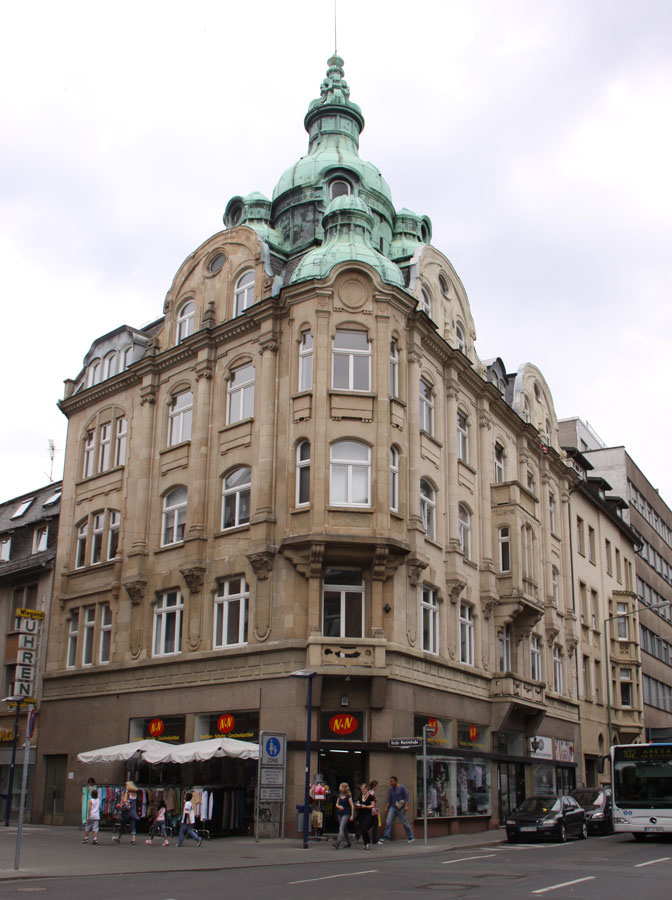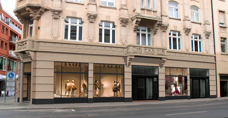 Der Entwurf war Grundlage für die erfolgreiche Fördermittelbeantragung im Rahmen des Fassadenprogramms der Stadt Offenbach (»Aktive Kernbereiche«). Die Planungsleistung zur Aufwertung der Ladenzone im Erdgeschoss und der Sanierung der Sandsteinfassade umfasste die Abstimmung mit der Unteren Denkmalbehörde Offenbach.