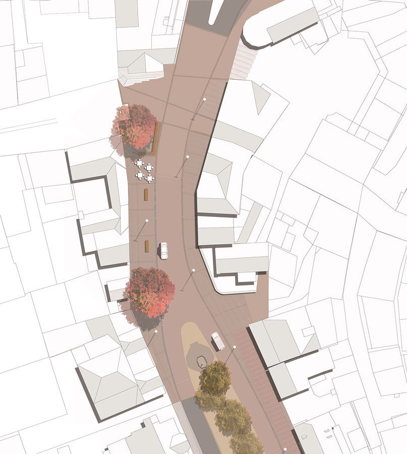 Entwurfsplanung für den Bereich Graben, einen öffentlichen Raum am Übergang zwischen sanierter Altstadt und aufzuwertendem Haupteinkaufsbereich der Innenstadt Heppenheim. Ziel war eine zusammenhängende, ruhige und hochwertige Gestaltung der Schnittstelle zwischen Altstadt und Fußgängerzone in der Innenstadt Heppenheims.