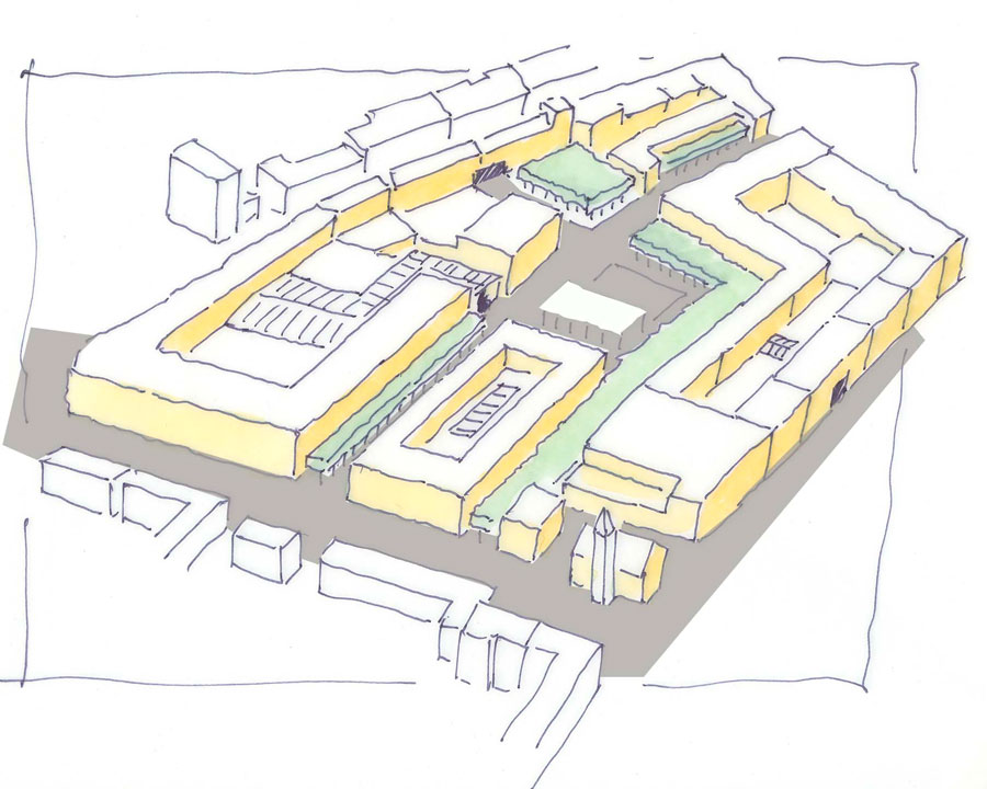 Zur Klärung der städtebaulichen Ziele für das leer stehende innerstädtische Karstadtgebäude und die umgebende Bebauung wurden verschiedene Bebauungs- und Nutzungsvarianten exemplarisch dargestellt.
