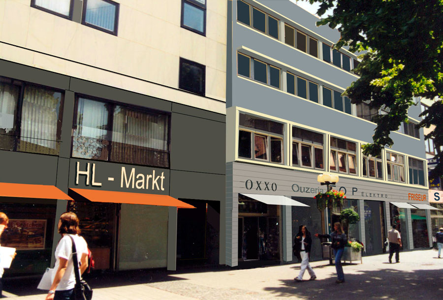 Gestalterisches Leitbild für eine Innenstadt, die im Wesentlichen das Produkt einer Nachkriegs-Flächensanierung ist. Das Leitbild wurde unter intensiver Beteiligung der örtlichen Hauseigentümer und Händler sowie der Verwaltung und Politik erarbeitet und zeigt anhand überarbeiteter Rüsselsheimer Gebäude die Ziele für eine gestalterische Aufwertung. Fassadengliederung, Fassadenmaterial, Fassadenfarbe, Vordächer und Werbeanlagen sind die Leitbildthemen.